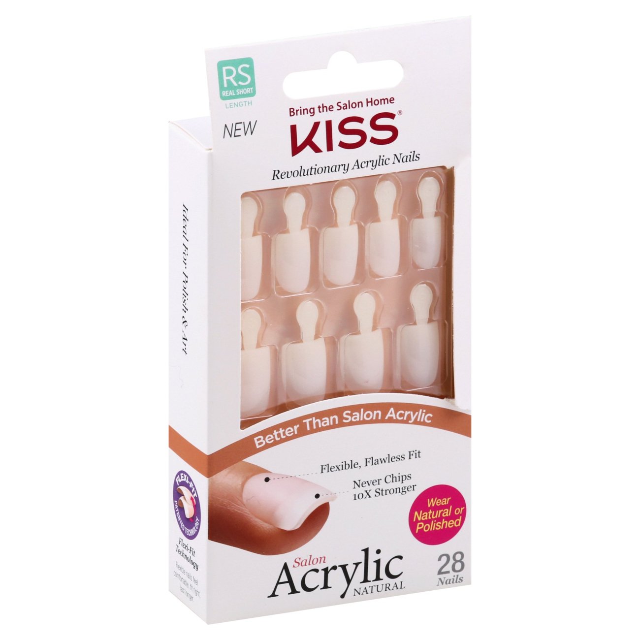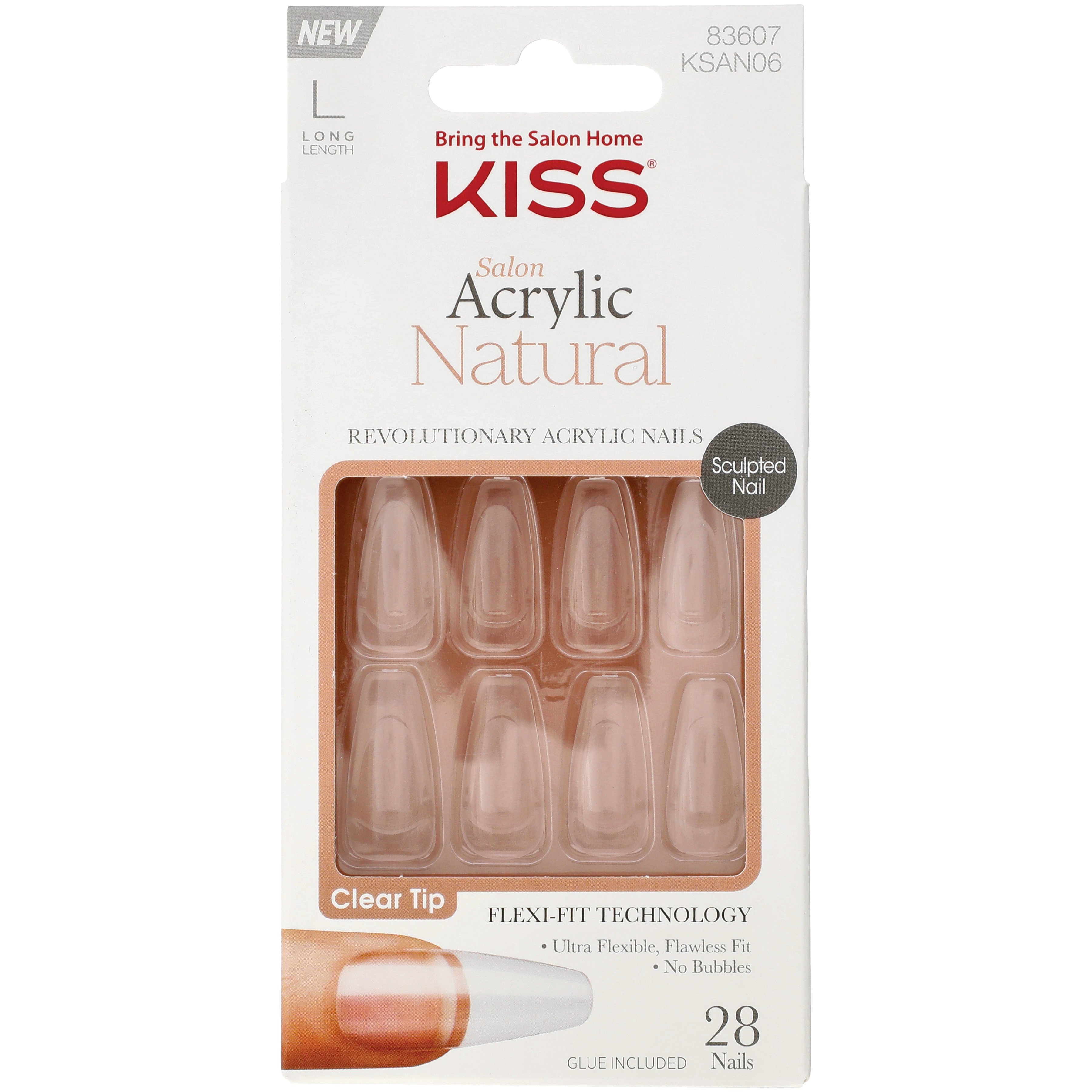 Up to 7 cash back KISS Salon Acrylic Natural Nails Object of Desire Ultra-flexible and flawless fit with no bubbles Kit contains 28 acrylic nails 2g of pink gel glue a mini file and a manicure stick KISS natural nails can be worn bare or with polish. But KISS took it up a notch with glue-on false manicures created with chip-free acrylic-infused technology that gives nails strength in minutes. Watch me put on my salon acrylic pr.