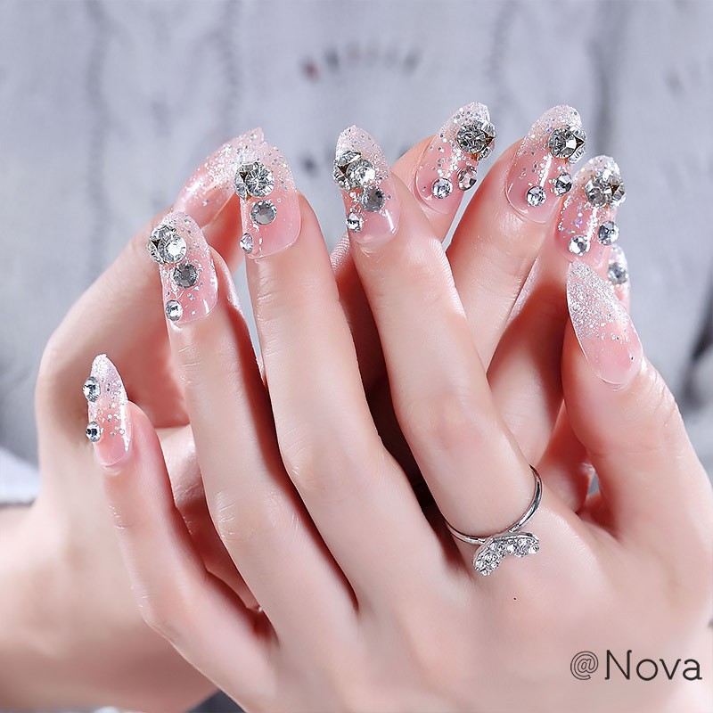 24pcs Luxe Shining Rhinestone Wedding False Nails Transparent Glitter Ninthavenue Europe