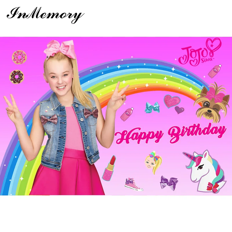 Inmemory Jojo Siwa Birthday Photographic Backdrops Girls Birthday Unicorn Photo Background Pink Theme Vinyl Photo Booth Props Background Aliexpress