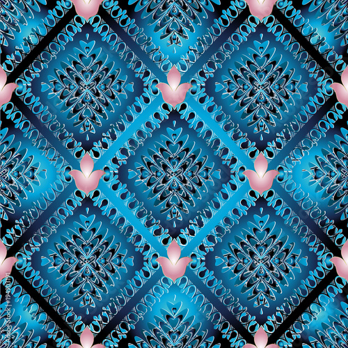 Abstract Vector Blue Seamless Pattern Modern Background Wallpaper With Floral Shapes Figures Abstract Pink Lily Flowers Frames Rhombus And Elegant Ornaments Design For Fabric Textile Stock Vector Adobe Stock