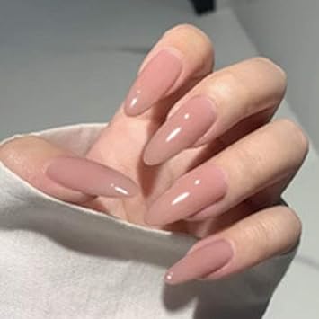 Amazon Com Fdesigner Long Press On Nails Pink Fake Nails Glossy Full Cove Acrylic Nails Nude Artificial Nails For Women And Girls 24pcs Beauty