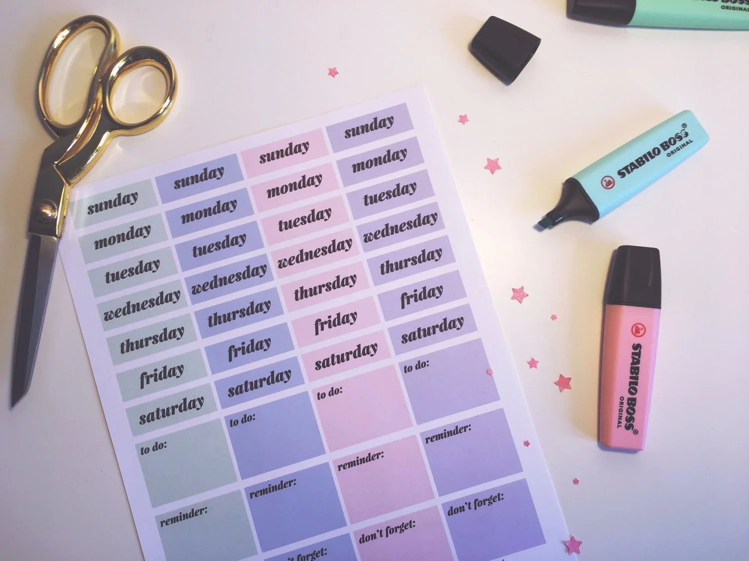 Well youre in luck because here they come. Planner and bullet journal printables are a quick way to make your planner beautiful and functional without spending all week agonizing over your layout. I added weekday and monthly stickers by name mon-sun J-D as well as some different shapes like circles and squares some with an additional checker pattern.