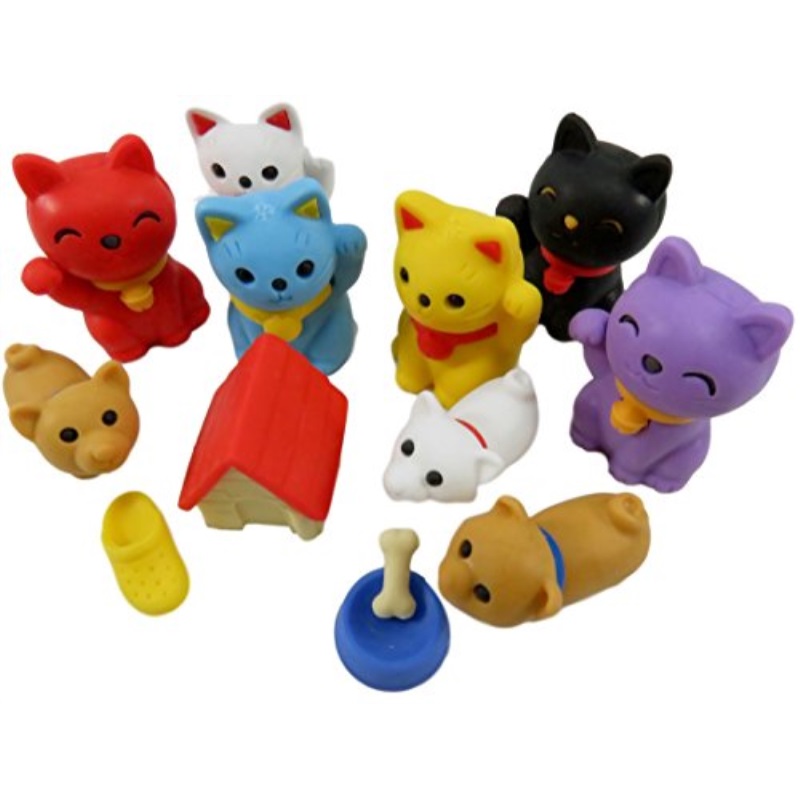 Daiso Japan Eleacb01h1dt068 Dog Meets Cat Take Apart Mini Erasers Pack Of 12