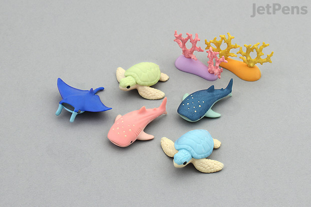 Penguins Dolphins Whales Seals Cows Horses Pigs Hamsters Giraffes Frogs Pandas And Elephants -- 12 Designs In All With Each Animal Style In Multiple Colors. The set includes coral sharks sea turtles and a manta ray. These whimsical eraser toppers are sure to brighten up your day.